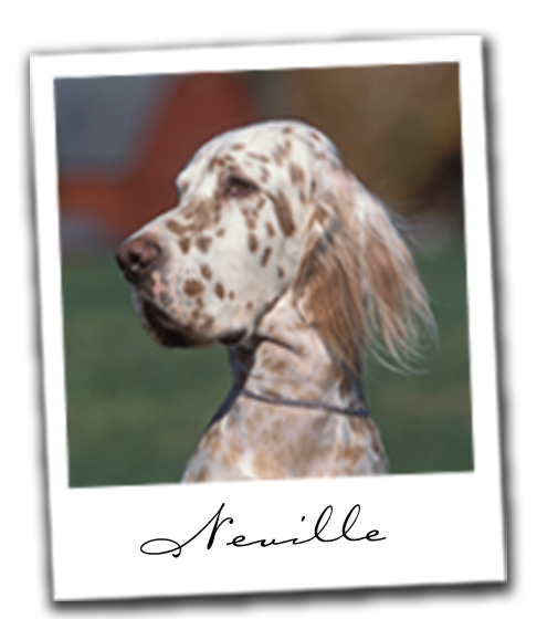 Neville was a Specialty and Group winning dog in the United States and a Group winner in Europe. He was on the top-ranked English Setters list for multiple years and finished 2009 in the Top Five. Neville has all the major health clearances.
